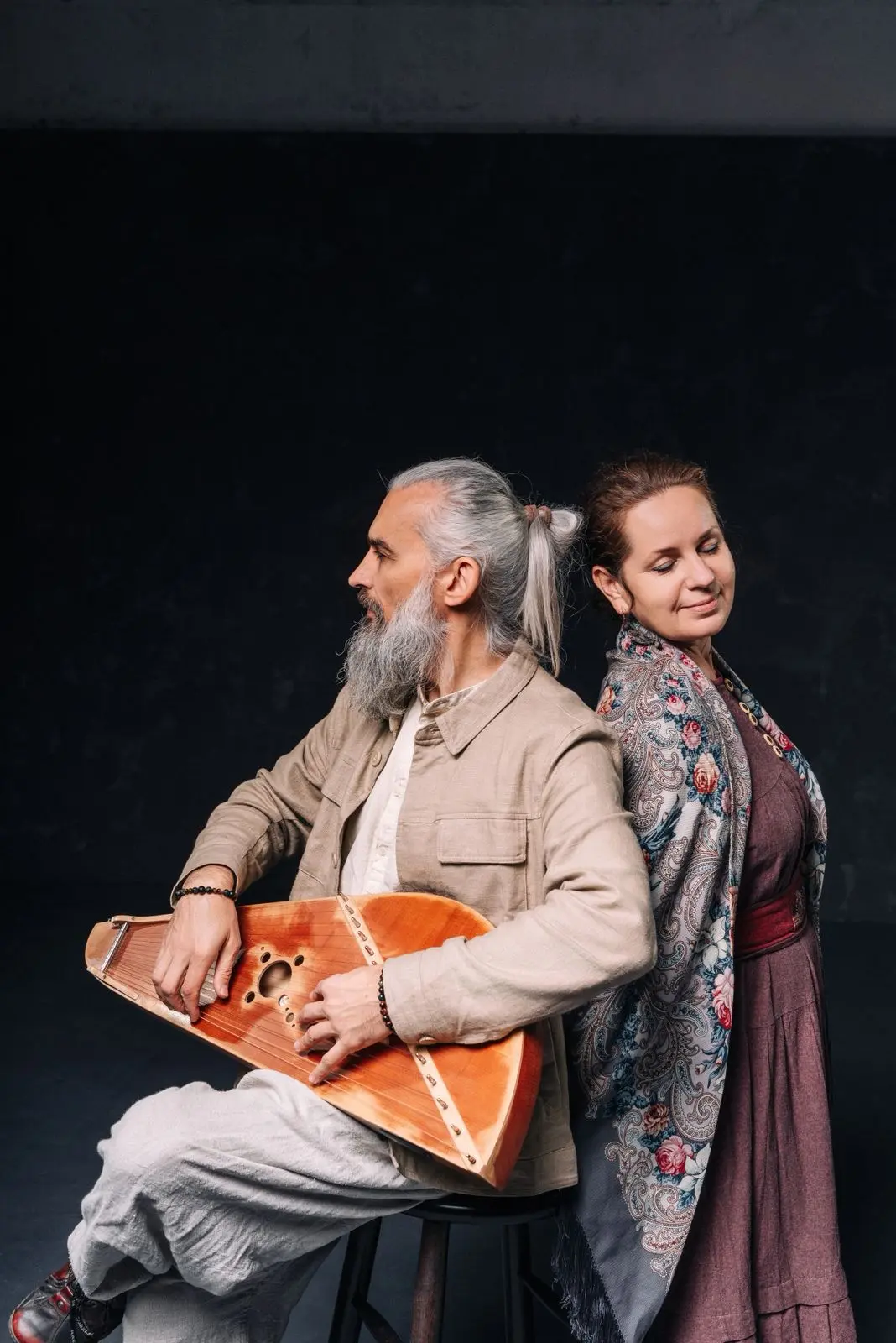 - Мы с супругой одно время глубоко погрузились в изучение нашей культуры, в том числе и народного кроя одежды. С тех пор жена ни разу не одела джинсы и ходит исключительно в длинных платьях народного кроя, которые ей очень идут. А надо сказать, что с недавнего времени она поёт с нами и играет на перкуссии. Я же и в жизни, и на концертах хожу в русских шароварах и рубахах из льна, хлопка, крапивы и конопли. Живу, как пою. Наши друзья-музыканты на сцене тоже в шароварах. Ну, и конечно, фишка в самом звучании – гусли-самогуды! Всё вокруг них: и жизнь, и музыка. Это не просто музыкальный инструмент, это – космос.