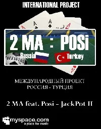 Совместный трэк группы Два Эмэй и турецкого рэп-исполнителя под именем Posi.Трэк в стиле bonce rap под названием "Jackpot II" - это интернациональный римэйк трэка группы 2 MA песни Jackpot. Римэйк представлен на сайте myspace.comМузыка битмейкеров из Турции, текст группы 2 MA и Posi, особо привлекательно звучат в автомобиле, дома и на танцполе!2 MA feat. Posi - это новый уровень коммерческих отношений России и Турции.В дальнейшем предполагается тесное сотрудничество и ещё больше совместных песен и трэков!Прослушать трэк вы можете здесь: www.myspace.com/2musicawardsPOSI:Ben 1991 yılında Rusya'nın Nalcık ilçesinde doğdum.Türkiye'ye 1997 yılında geldim.Müzik hayatım 2002-2003 yılları arasında başladı.Bana destek vererek yaptığım işle ilgili bi çok şeyi öğreten Yıldırım'a çok teşekkür ederim.Şu anda gruptan ziyade sevdiğim insan ve abilerimle yola devam ediyorum.Benim felsefemde geriye bakmak yoktur.Bunun için ne olursa olsun siz,sakın arkamda kalmayın..ve son bi şey daha..Kim ne derse desin yada kim olursa olsun benim bildigim tek bisey var.Bu yolda hep doğruyum ve doğru kalıcam.Kendime göre her zaman büyük düsündüm.Buna karsı cıkan salaklar olsada onların anlayamadığı şu;büyük düşünen büyük işler yapar..Azmin sonucu sadece zaferdir.. In 1991 I came to the world in the town of Russia Nalcik.I came to Turkey in 1997.My life started in 2002-2003 between music.I do support me by giving a lot of work-related teaching Yıldırım bi thank you very much.I like the group of people and now rather than continue the road with my brother.For this, regardless of what you, do not fear behind me..and one last thing ..Who may say what I think regardless of who or single word about you to.This way I am always right and I'll stay true.I always think big by myself.Although it against idiots member they can not understand the thinking that;big business makes big..victory is the result of work..