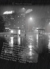 Припев: В моем городе снова дождь - Этот дождь меня сводит с ума. И напрасно меня ты ждёшь У заплаканного окна.