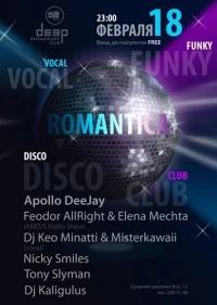 All night for you: DISCO / FUNKY / VOCAL / CLUB HOUSEDJs:■ Apollo DeeJay■ Feodor AllRight & Elena Mechta (AMDJS Radio Show)■ Dj Keo Minatti & Misterkawaii (vocal)■ Nicky Smiles■ Tony Slyman■ Kaligulus