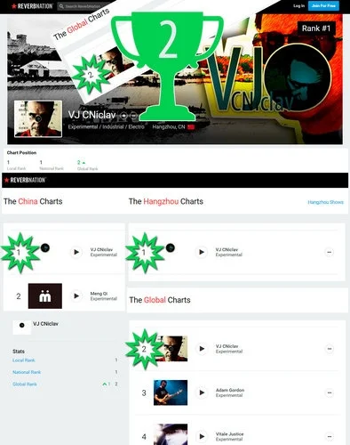 Первые места в национальном и местном музыкальных чартов Китая, по версии ревербнатион, остаются за VJ CNiclav: