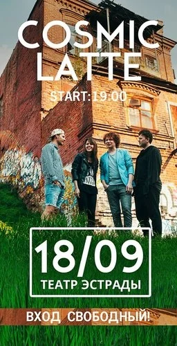 18 сентября в \"Театре эстрады\" состоится выступление группы Cosmic LATTE на торжественной церемонии закрытия фестиваля социальной рекламы \"Выбери жизнь!\". Вход свободный)
