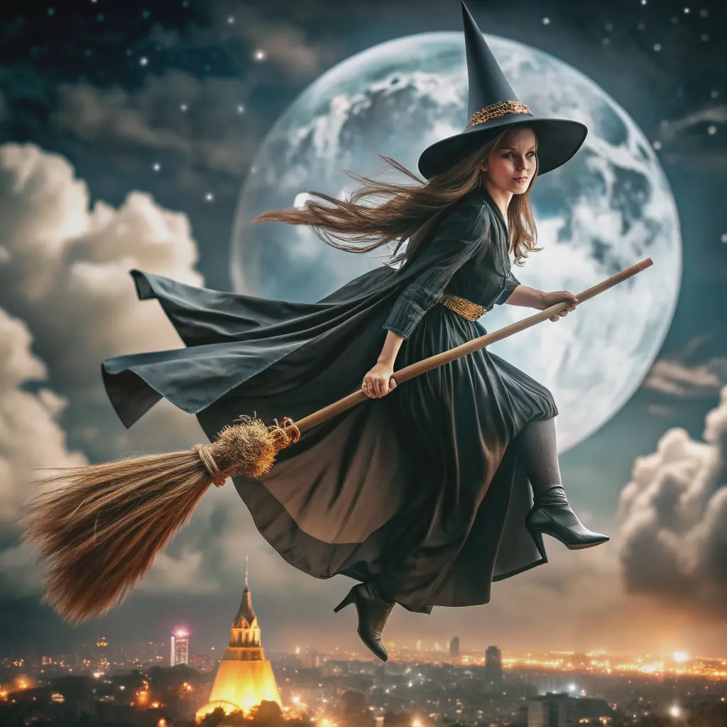 Я на метле новенькой, сердце так стучит.
