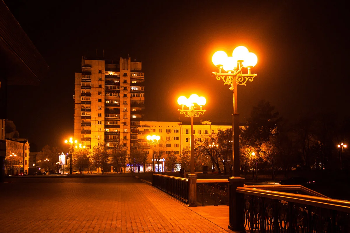 На улице пустой скучает тусклый свет в плафонах,