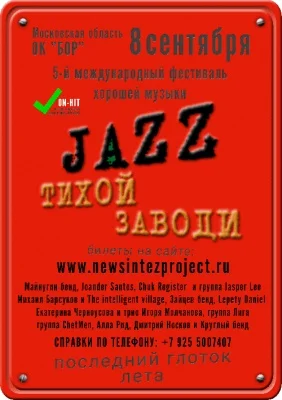 Джазовый опенэйр фестиваль "Джаз Тихой Заводи" пройдёт в этом году в пятый раз. В программе будут представлены самые разнообразные проекты от мейнстрим джаза и фьюжна, до блюз-рока и поп-соула. Главная идея организаторов - наличие музыкальной интриги и "нескучность" программы при высоком качестве исполнения.