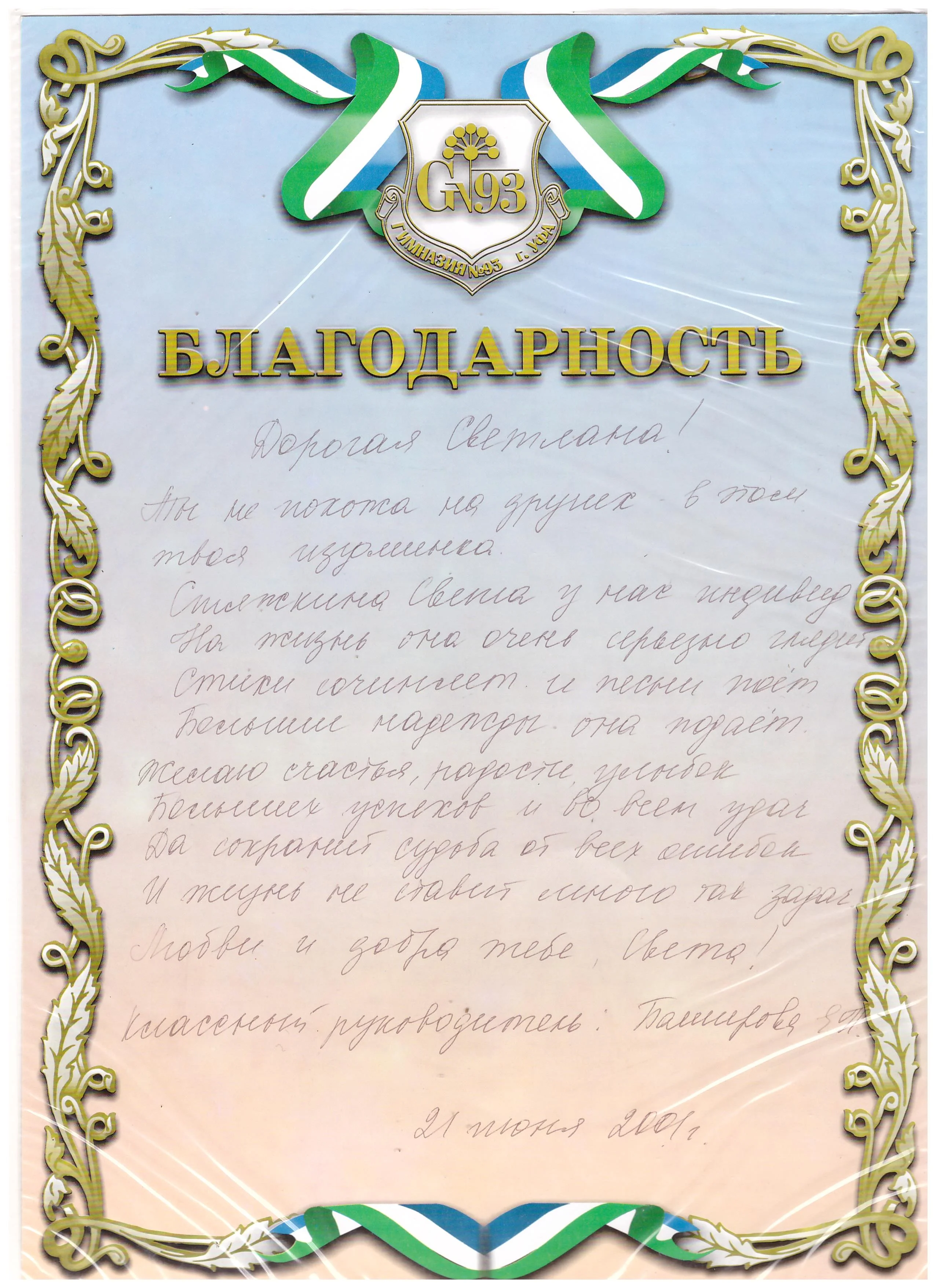 Благодарность по окончании 11 класса