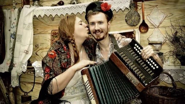 По деревне, да с гармошкой,