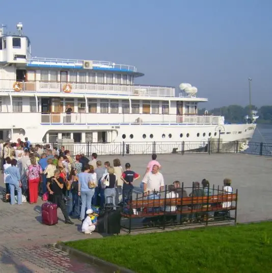 Отплывает теплоход.