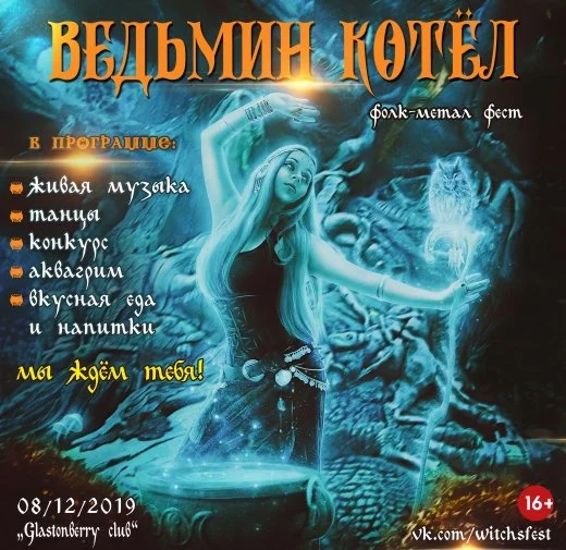 Наша добрая Ведьма встретит тебя на своей костюмированной фолк вечеринке, как самого важного гостя и угостит свежим отваром, в который она положила лучшие ингредиенты: живую музыку в исполнении групп: