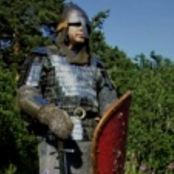 Дружина в доспехах стоит на реке.