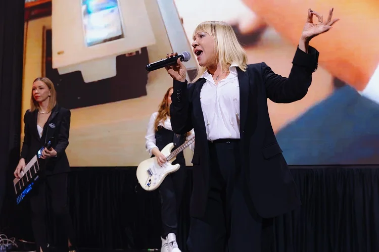 «Группа существует с 88 года по сей день. Не могу похвастаться какими-то суперсерьезными песнями, собственно, и не собираюсь этого делать. Потому что есть очень много коллективов, которые поют серьезные песни. В свое время мы просто радовали своими, не побоюсь этого слова, песенками большое количество людей», — сказала Татьяна Иванова — лидер группы, которая поет в ней с самого начала. Порадовать коллектив решил и гостей премии, исполнив две песни: «Хей, мама» и «Не забывай», заставив всех пуститься в пляс и вспомнить 90-е.