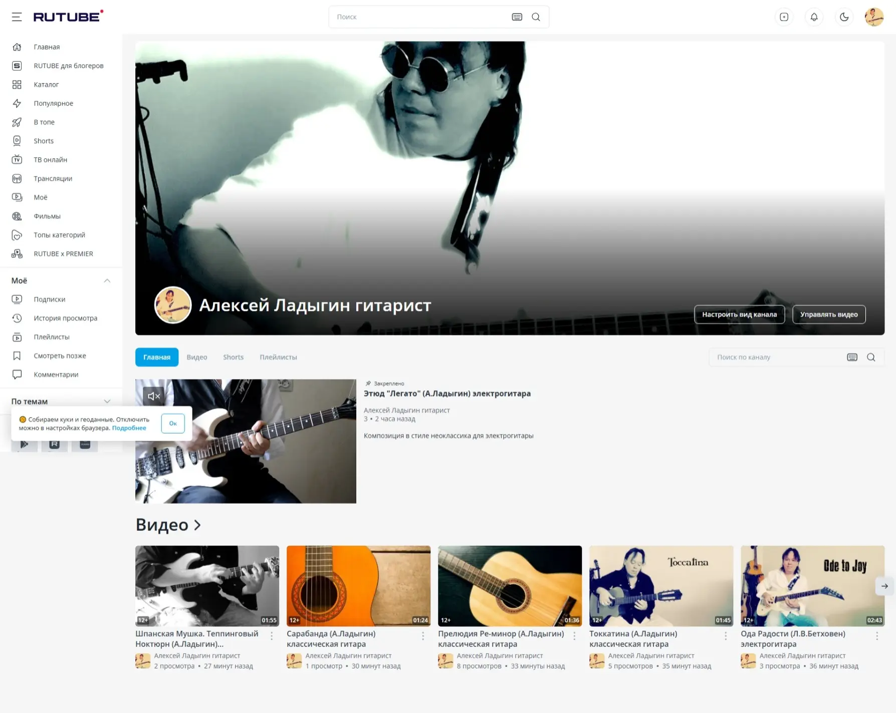 Мой Канал Гитарной Музыки на RuTube, на котором я также буду публиковать свои гитарные композиции и прочую музыку которую играю и пишу https://rutube.ru/channel/64996960/