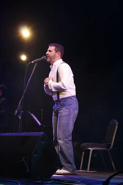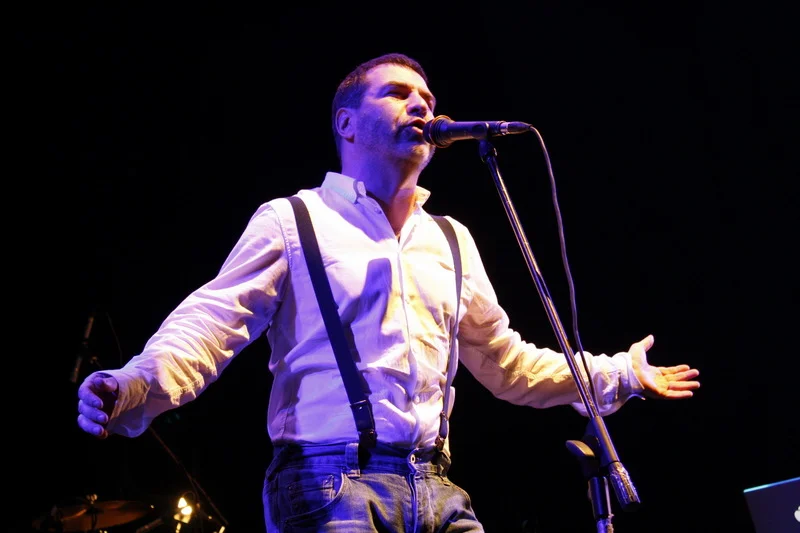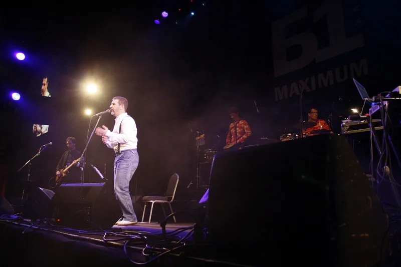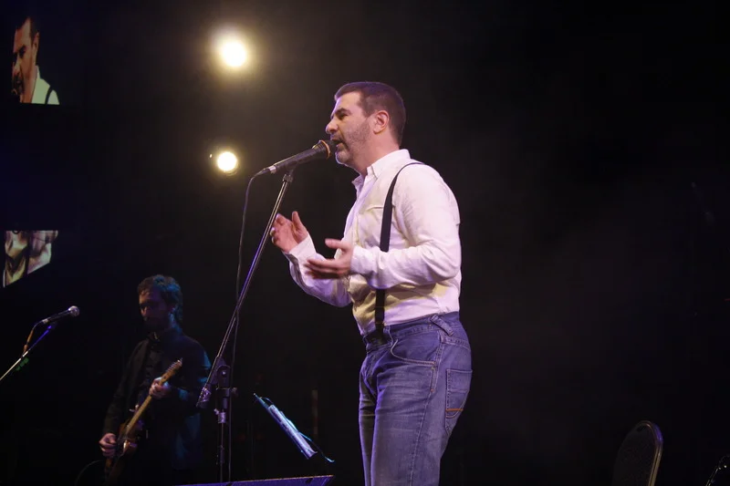 Перед началом кто-то "разминался" в баре, кто-то курил, но с перыми звуками все взгляды устремились на сцену: сначала вышли музыканты, и наконец, под бурные овации на публике появился бесспорно главный герой вечера, облачившийся в белую рубашку, джинсы и черные подтяжки.