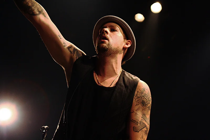 Но все меняется, когда приходят они, как принято говорить в рекламных роликах. Не успели мы и оглянуться, как Джоэл уже вовсю орет припев The Anthem. На первой песне обнаружилась извечная проблема Б1 — несуразная мешанина всевозможных звуков, в которой тонет голос и понять, о чем же все-таки нам пытаются сказать, а тем более спеть, абсолютно нереально. Только на этот раз к звуку добавились долбящие басы, которые нещадно стучали по диафрагме, поэтому после 2-х законных песен, отведенных для фотографов, пришлось срочно передислоцироваться к стойке звукачей - оазис в пустыне кошмарного звучания. Хотя Джоэл и Бенджи настолько обаятельны, что про звук забываешь напрочь уже к 5-й песне.