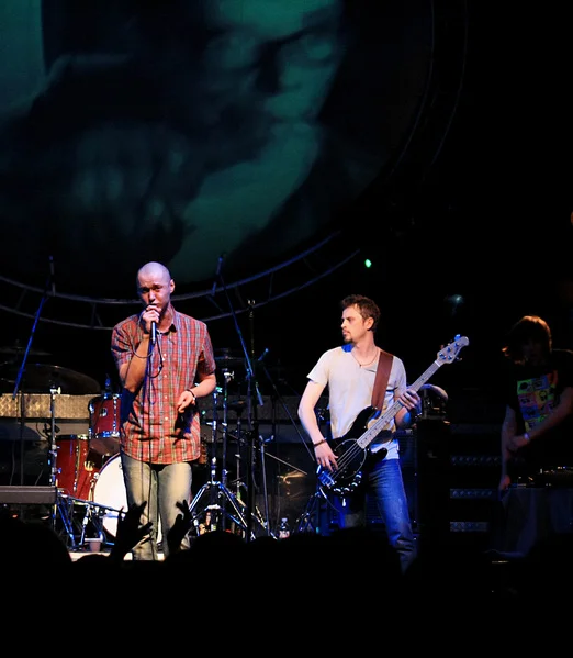 На этом заканчивается коротенький блок того Бумбокса, которым мы еще помним группу на концертах в не до конца забитом Китайском Летчике, только еще оттачивающих и «Ким Ми Були», и «Хоттабыча», и «Вахтеров». И начинается невероятно длинный и разнообразный концерт другого Бумбокса – Бумбокс-2011. Теперь перед нами уже полноценный рок-состав, и все те же старые хиты, только в малоузнаваемой, сильно утяжеленной форме, начиная с «Hip-Hop» и дальше по всему материалу. После чего опять смена курса – из инструментов остаются только клавишные, Бумбокс исполняют пару песен с «Pianoboy», в том числе и новый сингл «Этажи». И опять возврат к гитарам – насколько быстро группа умеет сменять лошадей можно только удивляться. Как и вокалу Андрея Хлывнюка, который, кажется, ни одну песню не позволил спеть себе в точности как на альбомах – сплошные импровизации. И это понятно: кому не наскучит каждый день петь одну и ту же программу, при этом никак её не обыгрывая. Так что и в этом пункте у Бумбокса очередной жирный плюсик.