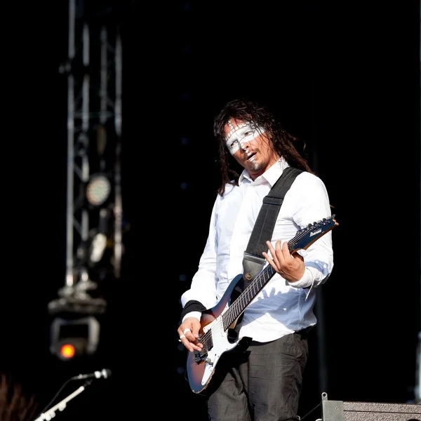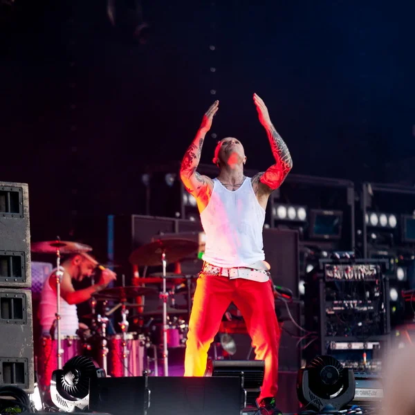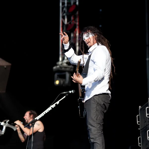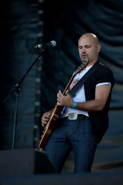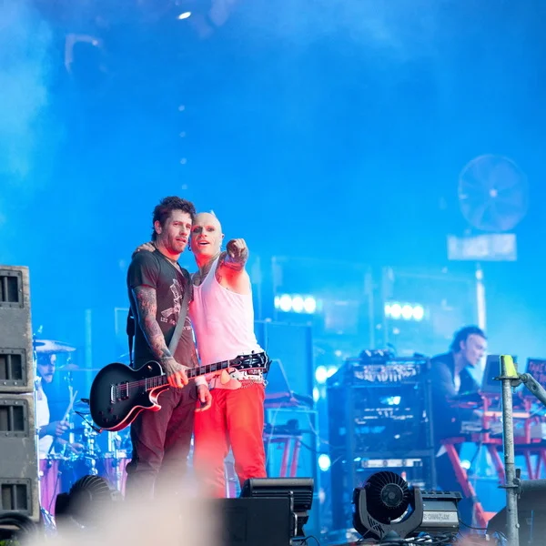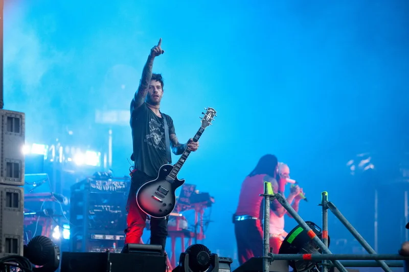 Зато веселые шотландцы Travis быстро исправили всем настроение. Расслаблено, плавно и весело они отыграли очень гармоничный часовой сэт. Фрэн Хили в забавной соломенной шляпе рассказывал что, как и под какую песню нужно делать зрителю, потому что «так получается очень красиво», где нужно поднять руки и в темпе вальса их покачивать, где – подпрыгнуть на нужный счет. И действительно, все получилось очень красиво и как будто правильно настолько, что даже крупные парни в майках Korn заразились и мирно покачивались вместе со всеми, заняв места перед второй сценой, и где уже стояла та-самая-ударная-установка Рея Лузье.