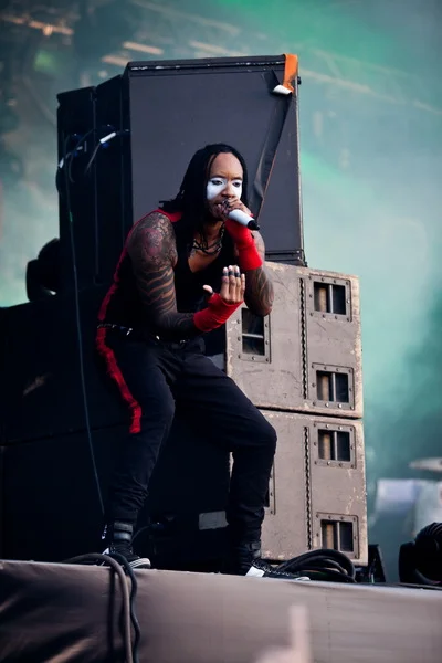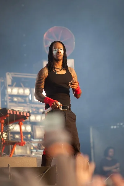 За долгий часовой перерыв перед выходом The Prodigy все успели отдохнуть, надышаться и набраться сил. Не очень был понятен смысл выхода депутата Единой России с пламенной речью «за наших бойцов, за Народный фронт, за Единую Россию» перед утомленными ожиданием фанатами группы, но это не имеет особого значения. В районе 21:00 набитая до отказа фанзона и еще тысячи глоток в Тушино взревели при первых звуках World's On Fire. Красавцы Кит Флинт и Максим Реалити, не останавливаясь ни на секунду на одном месте, постоянно общались, шутили и раззадоривали публику. Перед самой сценой творился ад, чуть дальше – просто сумасшествие. Несмотря на нехарактерное выступление практически при свете дня, всего час отведенного времени и обилие милиции вокруг сцены, парни остались довольны встречей с «сумасшедшими русскими», а те в свою очередь отдались во власть бита и драйва. Не успевая выдохнуть и отдышаться, тысячи человек подняли облако пыли, словно это был последний концерт The Prodigy в их жизни, последняя возможность выплеснуть накопленное и оторваться. MAXIDROM завершился на Their Law. Каждый из ошеломленной, выжатой многотысячной толпы думал только об одном – «мало, еще!».