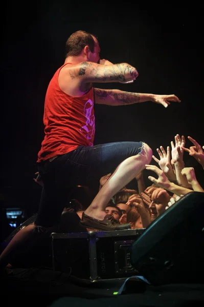 После достаточно грязного звука на разогреве особых волнений не возникает: нормальная ситуация, которая обычно исправляется к выходу хэдлайнеров. Но в данном случае чуда не происходит, August Burns Red выходят, а звук в лучшую сторону не меняется. Ходят слухи, что связано это со своеобразной отстройкой звука на цифровом пульте, управляемом с беспроводной консоли – утверждать не беремся, так ли это на самом деле, но факт остаётся фактом. Тем более удручает то, что сетлист действительно шикарный: кроме пары новых песен с Leveler, остальной материал можно смело упаковывать в компакт-диск «The Best Of August Burns Red».