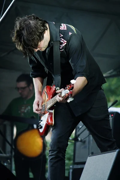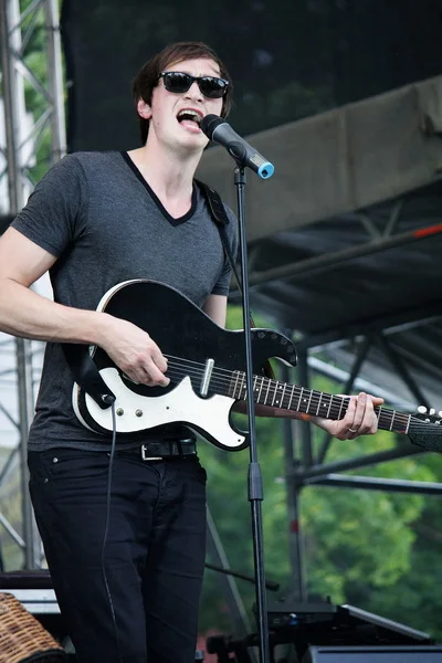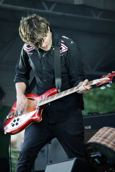 Первой на сцену, практически вовремя, вышла относительно молодая, но подающая надежды, команда Erland & The Carnival – пока самая загадочная для наших слушателей группа. Музыка на вид инфантильного Эрланда Купера и сотоварищи действительно необычна и не повторяет шаблонов, по которым скроено большинство британских инди-коллективов последних лет. Несмотря на заявленный в жанровом определении фолк, коллектив звучит весьма привычно для ценителей брит-попа, не позволяя эти самые национальные традиции обнаружить с первого подхода. На фоне последующих участников фестиваля Erland & The Carnival хоть и смотрятся бледно, но своего очарования не теряют. В основном благодаря сетлисту:с двух имеющихся в наличии студийных альбомов было выбрано если не лучшее, то уж точно самое достойное. Второй альбом Nightingale сам по себе несколько интереснее и мелодичнее дебютной работы, что демонстрируют нам в полной мере – со сцены звучит добрая половина свежего релиза. Но и без замечательных во всех отношениях Trouble In Mind и Was You Ever See, к счастью, не обходится.