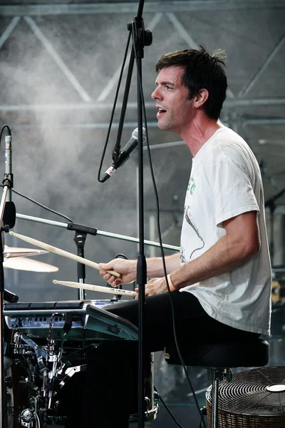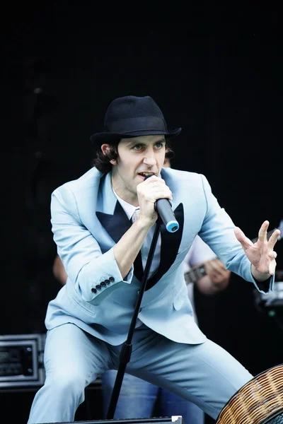 После значительного перерыва почти в 50 минут на сцену сначала неторопливо выходят музыканты Maxïmo Park, а затем на нее буквально вылетает Пол Смит, в неизменном котелке и экстравагантном голубом костюме, да еще и с листом заготовленных фраз на русском – сразу видно, что к своему выходу фронтмен подошел ответственно. Как и однофамилец из Editors, Пол на сцене ведет себя очень эмоционально, да и от безграничного обаяния никуда не деться. В сочетании с прекрасно настроенным звуком и просто погожим днем музыка Maxïmo Park от этого только выигрывает. В сетлисте мирно уживаются песни со всех трех альбомов, хотя и кажется, что A Certain Trigger все-таки играют больше. Парни настолько разошлись, что даже исполняют один, по словам Пола, очень древний unreleased. Увы, публика такой широты души не оценила – все же подобные треки стоит приберечь до сольных выступлений. Свой по-настоящему яркий и запоминающийся перфоманс Maxïmo Park завершают, наверное, на самой позитивной ноте – Apply Some Pressure, под которую не танцует только ленивый. Или глухой.