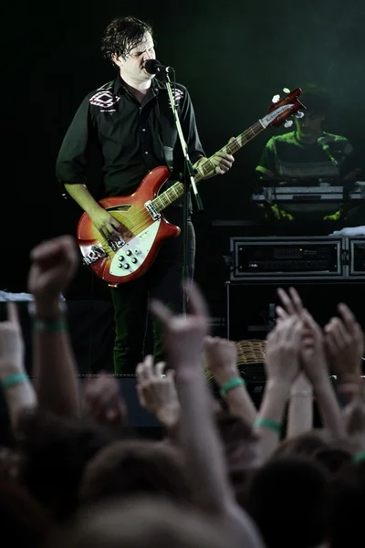 После традиционных 45-50 минут ожидания на сцене фестиваля наконец-то появляются те, ради кого Сад Эрмитаж посетило явное большинство. Зачинатели нью-рейва, Klaxons пользуются огромным успехом во всем мире, хотя по сути ничего нового они не открывали. Энергичные треки с легким оттенком «кислоты» и яркие одежды, которые используются исключительно в клипах, – вот и весь эпатаж. Другими словами, под этикеткой alternative dance punk с примесью electroclash ребята вполне могли бы пройти. Но Alternative звучит в этом контексте как комплимент и констатация факта одновременно – похожих коллективов, сумевших достичь такого признания, на звездном небосклоне инди-музыки пока что не наблюдается.
