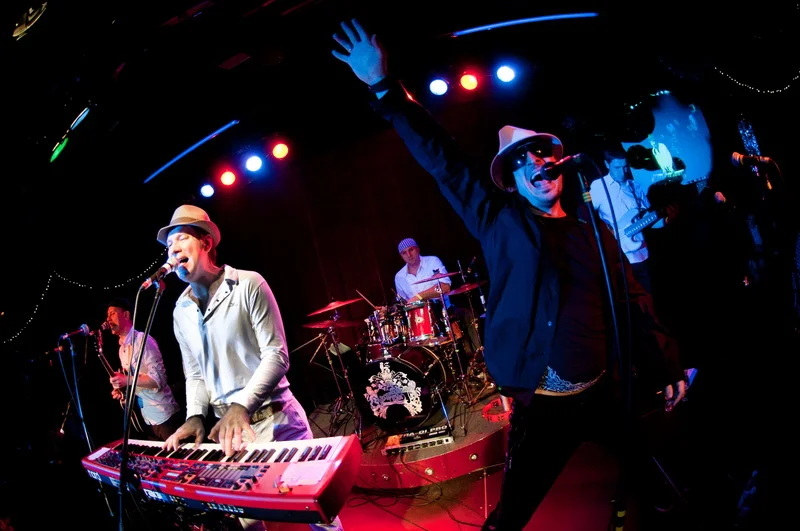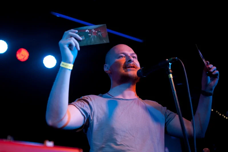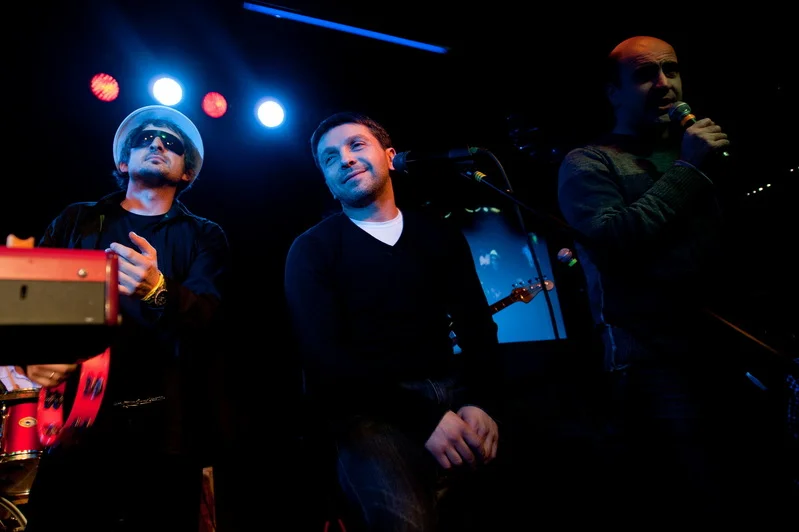 Во-первых, неожиданным оказалось то, что у вечера были ведущие – в качестве них на сцену вышли ди-джеи Нашего Радио Павел Картаев и Вахтанг Махарадзе, которые затем приглашали разных артистов для поздравлений группы с днем рождения.