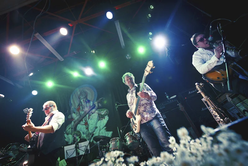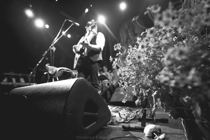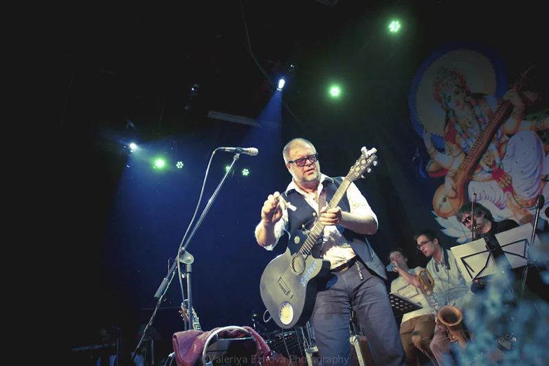 2 февраля в московском клубе Б2 состоялся один из двух планируемых Борисом Гребенщиковым и группой Аквариум концертов. Клуб, конечно же, был забит под завязку. И все напитывались положительной энергией, слушая Krishna Das, которого Борис Борисович всегда ставит фоновой музыкой перед концертами. На заднем плане, как и всегда, большое панно с индийской богиней мудрости – Сарасвати.