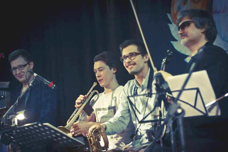 И вот, наконец, достаточно внушительный состав группы, начиная с Бориса Рубекина, стал заполнять небольшую сцену. Когда все заняли свои места, под восторженные крики вышел и сам БГ.
