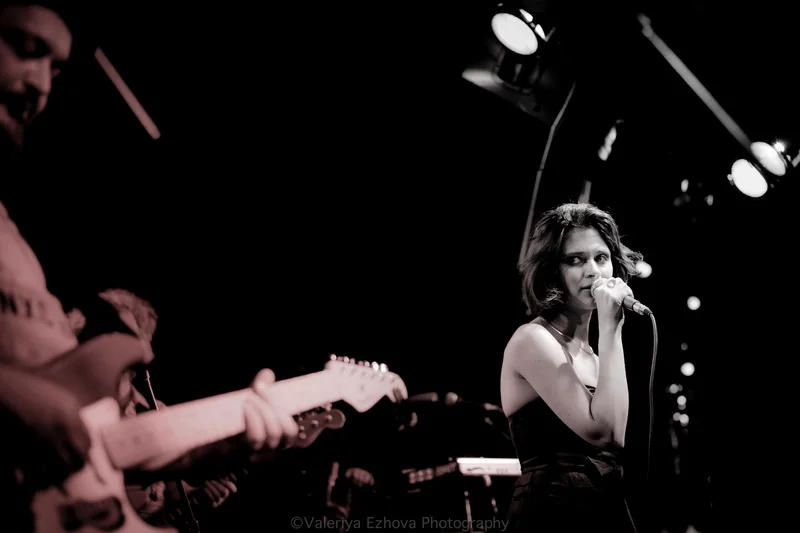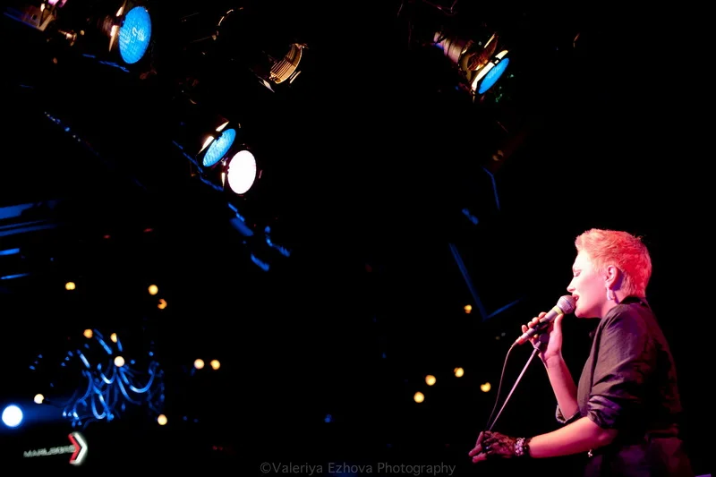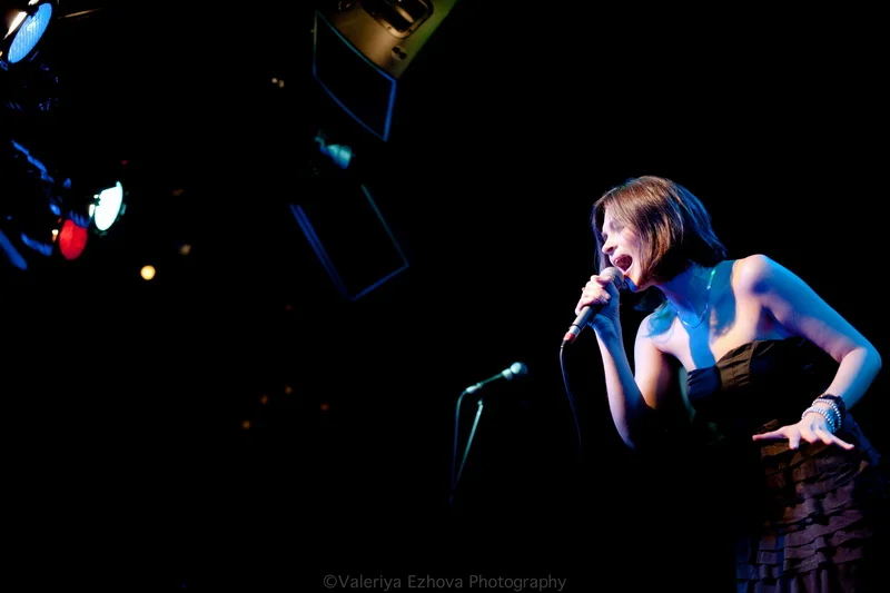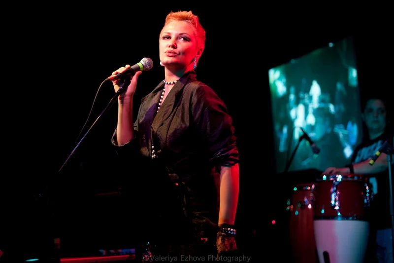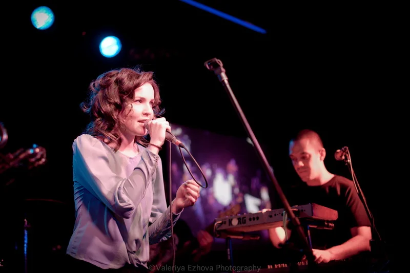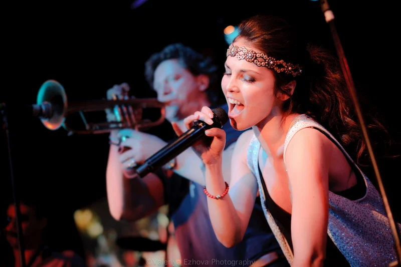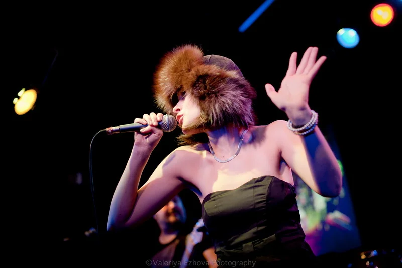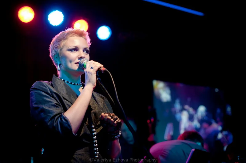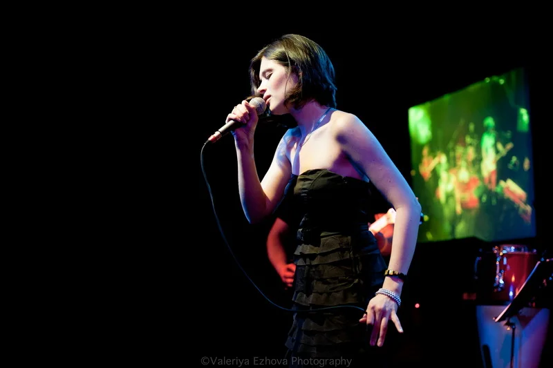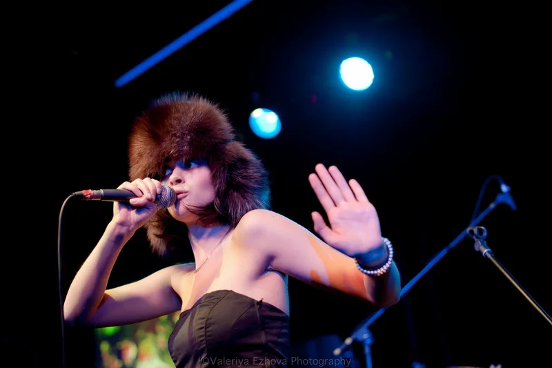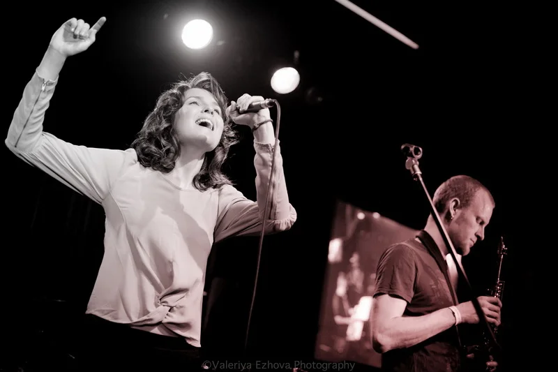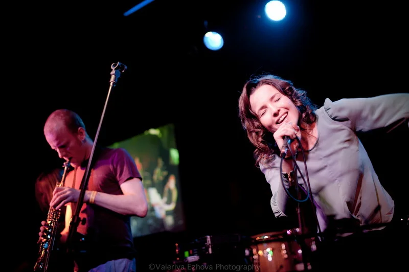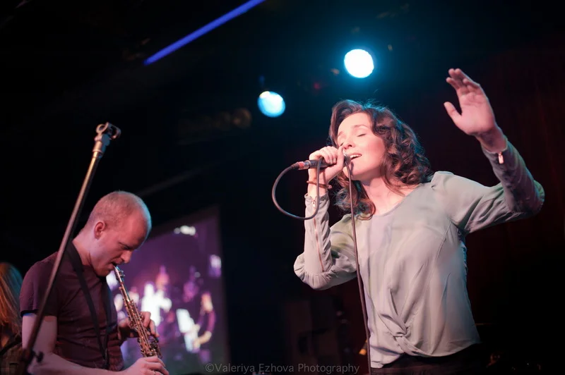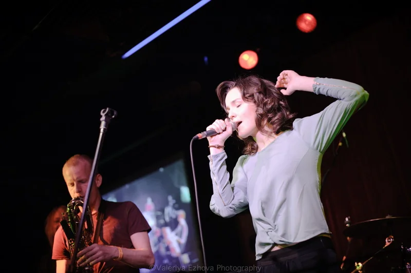 Следующей на сцене появляется самая звездная участница феста – Женя Любич. «Русская француженка», участница известнейшего коллектива Nouvelle Vague сразу же передала залу привет из двух городов – Питера и Парижа. Ее джаз – русская душа, сочетающаяся с парижской изысканностью.