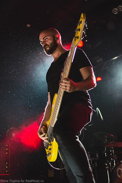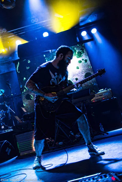 Ну так вот, Periphery — довольно интересная команда, хотя и еще одни представители того самого прогрессивного метала, от которого иногда хочется спать, но с другой стороны под их телеги, наверное, классно на скейте рассекать по дворам спальных районов. В общем, брейкдауны, смены темпа, чистые пропевы, восьмиструнные гитары, звучащие как маленький мотороллер на низких оборотах, — так бы я и охарактеризовал стиль, в котором играют команды, подобные Periphery. Кстати, отличительная черта данной банды — третий гитарист.