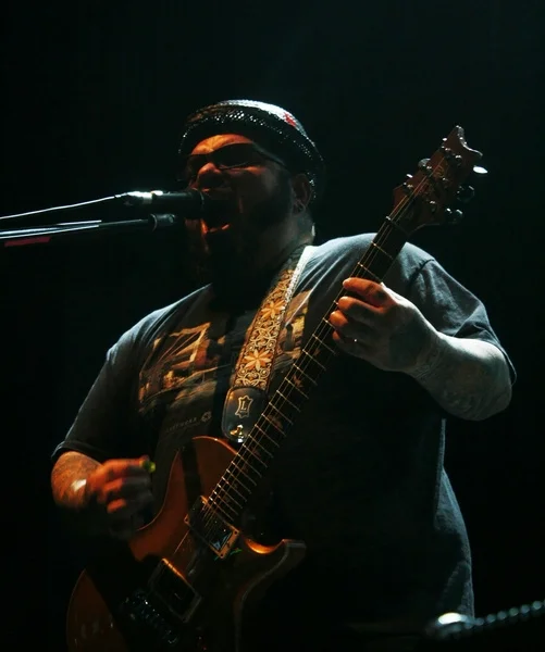 Вот и бумажный сетлист действительно был практически стандартным, но, видимо, отношение действительно уже стало особенным к третьему приезду, и совершенно неожиданно P.O.D. ударяют по ушам однозначно самой долгожданной песней с Satellite, The Messenjah (которую они не играли вживую, на минуточку, с 2011-го года). И потом ещё, на резервных запасах голоса Сонни, также незапланированной балладой Beautiful.
