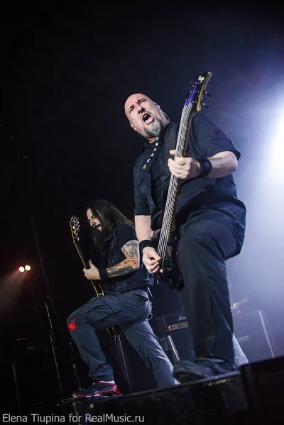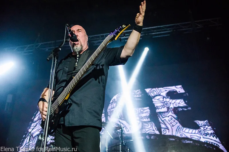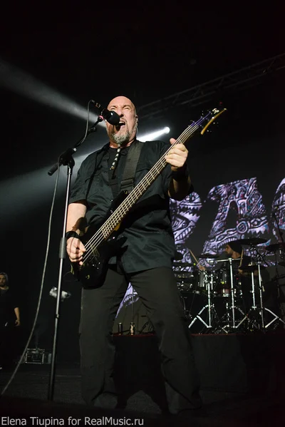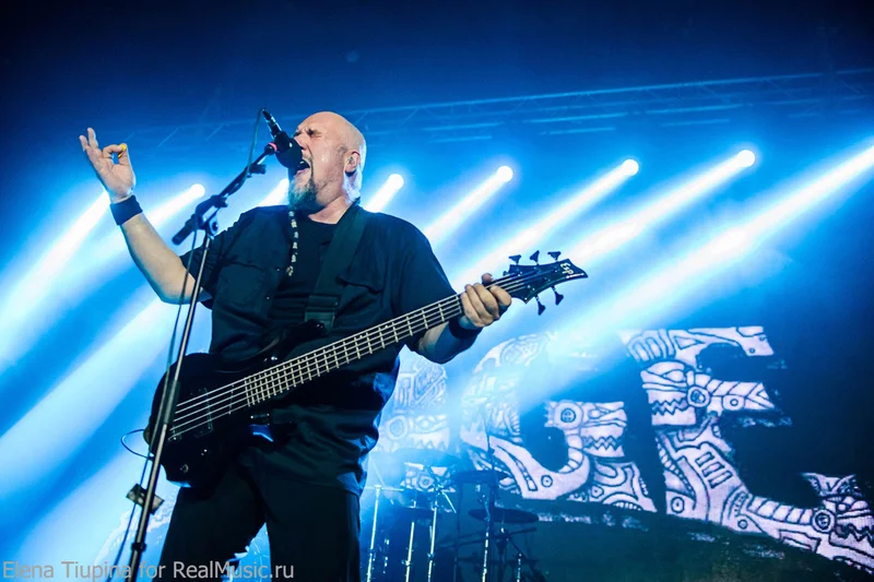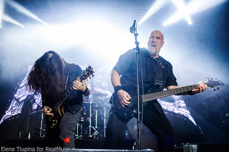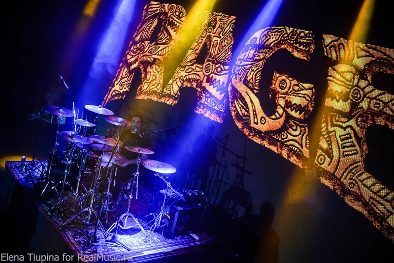Удивительно, но пересменка на сцене была очень короткая, на экране в глубине сцены логотип SOBER-ов сменился на знакомый всем, буквально 10 минут редких чеков по инструментам, со сцены послышались различного вида интервалы на гитаре, а затем интро — нарезка всяческих кусочков песен, и вот не в меру эпичным голосом Пиви послышалоcь что-то там про «тьму везде», и наконец вышли на сцену (первый раз вижу) новый барабанщик и гитарист. Ну и бодрячком, вразвалочку сам Пиви Вагнер. Начали с ходу с той самой песни, про которую написано в начале, — очень быстрая и мощная, пролетела пулей. Что до очередной смены состава группы, то на качество исполнения никак не повлияло, если сравнивать с двумя другими концертами, на которых я был до этого. Новый состав не такой именитый, но, как и раньше, интернациональный: на гитаре — Маркос Родригез, на барабанах — Вассилиос Маниатопулос.