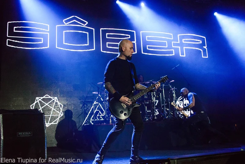 Замерзших по дороге к «Авроре», пока еще не многочисленных, зрителей вышли разогревать SôBER — испанский не очень тяжелый метал, на языке страны производителя звучит очень фольклорно. Внешне же фронтлайн в составе двух гитаристов и бас-гитариста напоминал представителей мексиканского наркокартеля из одного популярного сериала. В общем, прически у них были не по погоде, хотя барабанщик отжигал и махал хаером за четверых. Где-то после 3-й или 4-й песни им все же удалось расшевелить вялую с мороза публику, понемногу наполнявшую цилиндрическую аудиторию «Авроры». Кто-то уже успел разогреться как следует, и после каждой песни поддерживал артистов возгласами «Браво! Брависсимо!».