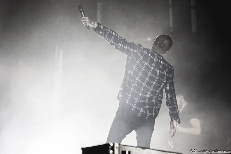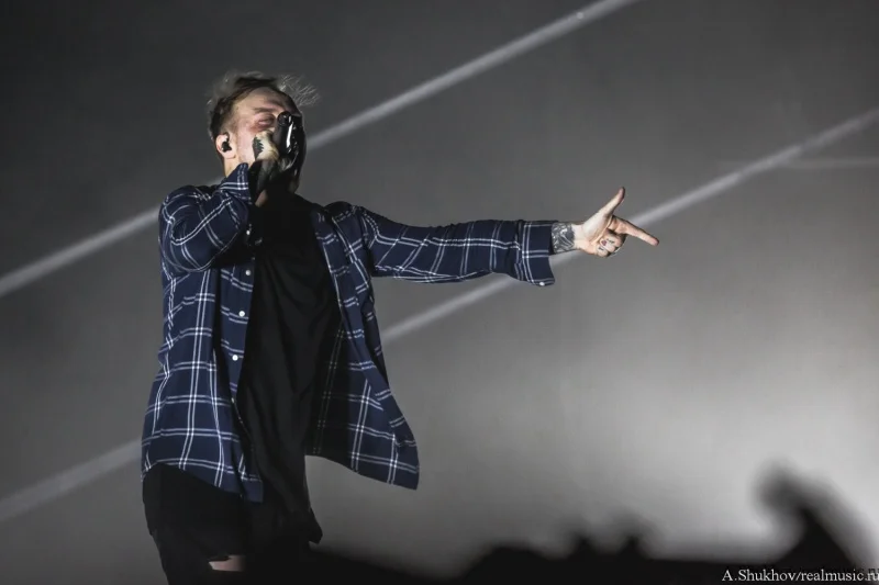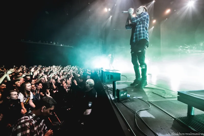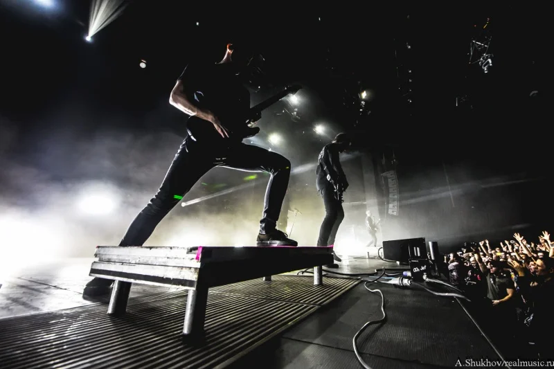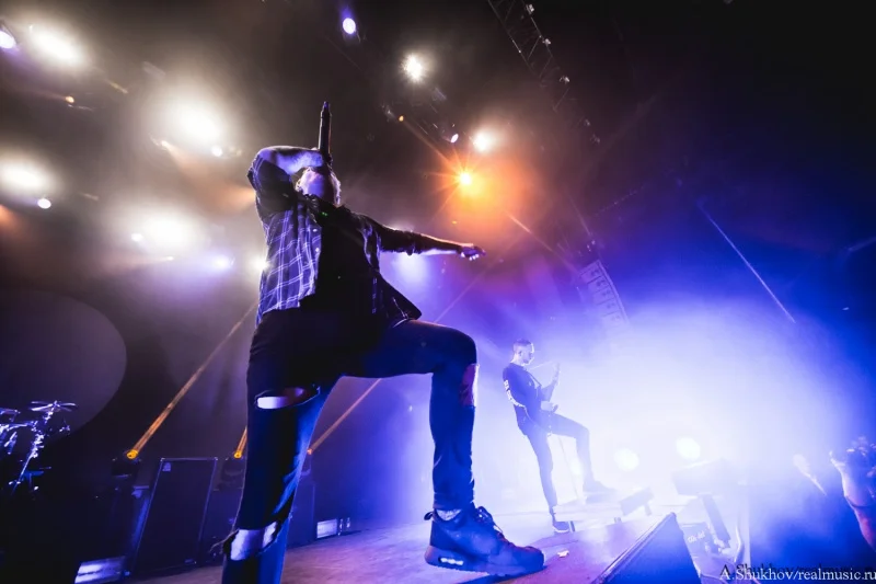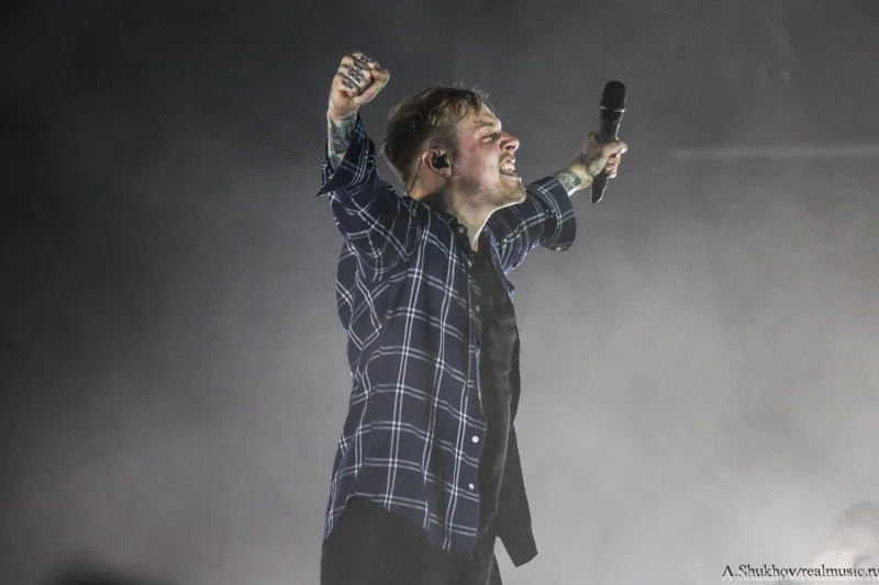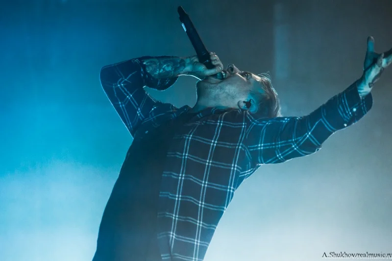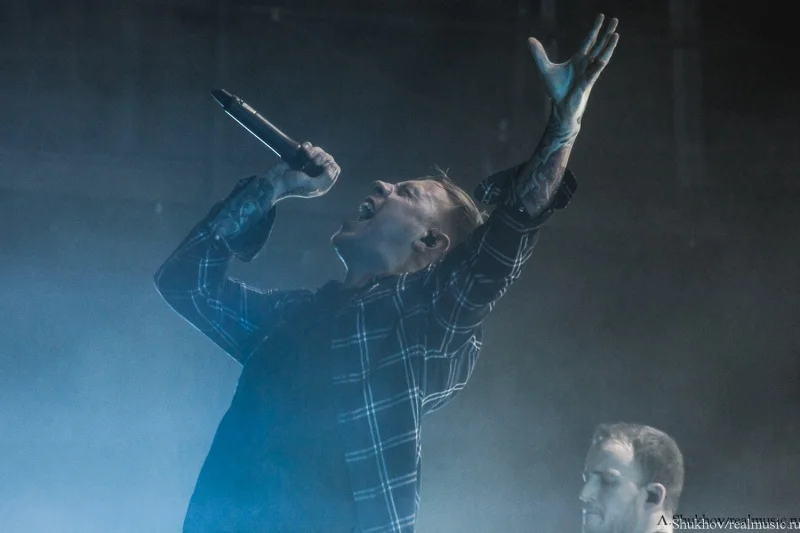 Они смотрелись как инородный предмет, который случайно зашили в теле пациента. Но во многом в этом свою роль сыграла атмосфера внешняя — практически пустой огромный клуб и такая же огромная сцена, на которой даже не удосужились сменить свет на как минимум более интимный. Вот представьте себя на месте музыкантов — кучка откровенно скучающих лиц и вы на огромной сцене со всем возможным включённым освещением. Синдром группы, открывающей open-air — никому тебя не надо, так ещё светит всё вокруг так, будто на операционном столе лежишь. Плюс технические накладки и явные неполадки со звуком, в чём сама группа уж точно не виновата. В итоге даже колоритный иисусоподобный вокалист группы и достаточно заразительные напевы финального трека не смогли вызвать желаемый резонанс в зрительном зале. Да что уж там говорить, этот самый зрительный зал даже на включённый после разогрева треклист отреагировал бодрее. Ну, конечно же, всё своё, старое-доброе-родное, тут тебе и Linkin Park, и Korn, и Parkway Drive, и Beartooth, и Counterparts, и ничего нового воспринимать не надо. В любом случае выступление такого масштаба стало для группы дебютным, и я уверена, что они ещё поднатаскаются для работы с аудиторией подобного размера, потому что на тех же живых выступлениях поменьше эти ребята рвут в щепки всех и вся. Остаётся пожелать им лишь достойного и адекватного зрителя.