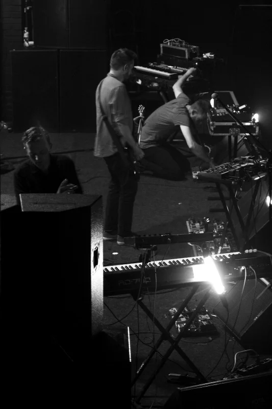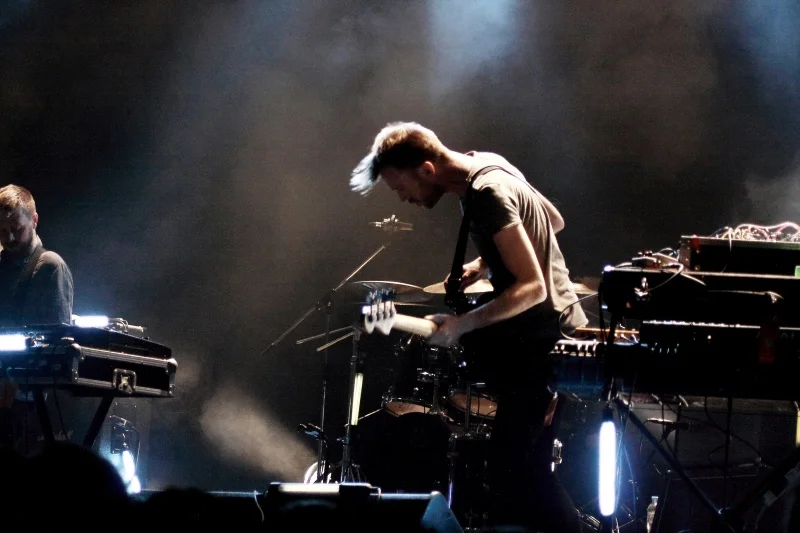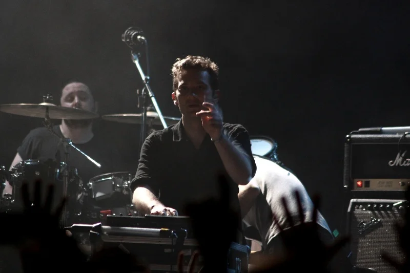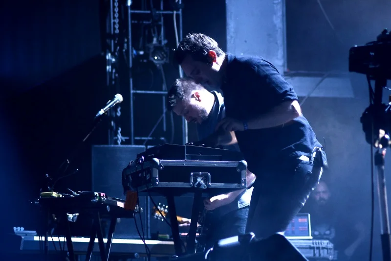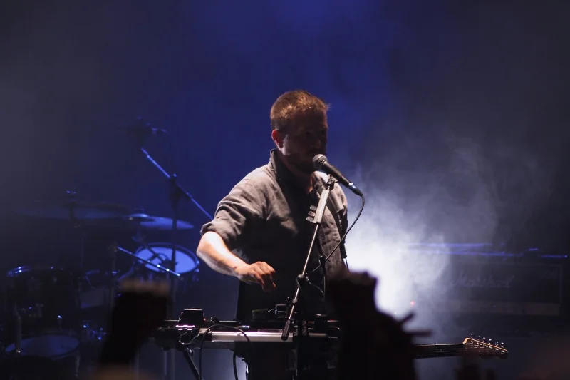 Чем хороши 65daysofstatic, спросите вы? Весь пост-рок можно условно поделить на пост-рок «базовый», пост-рок «мат-роковый» и пост-рок «космический». 65daysofstatic же отличаются тем, что успешно сочетают в своей музыке все эти притянутые за уши, но характеристики, благодаря чему и создаётся их особая атмосфера, основой которой и является это сочетание несочетаемого. Не только из альбома в альбом, но и внутри самих записей чувствуется это разнообразие настроений и звучания, способное вызвать такой спектр полярных эмоций одновременно, что особо впечатлительным слушателям каждое прослушивание 65dos грозит неслабой эмоциональной встряской. И именно такую встряску и устроили британцы, стоило им лишь подняться на сцену. Необычайно милая и трогательная четвёрка вышла к зрителям настолько скромно и неловко, насколько же нескромно и беспардонно устроила и себе и зрителям сеанс ментального катарсиса и душевного стриптиза. Начав с «Monolith», трека с последней работы, британцы прошлись практически по всем своим полноформатникам. Ещё из «No Man’s Sky» прозвучали «Asimov» и «Supermoon», в остальном же в сетлисте были композиции с «The Fall Of Math», «We Were Exploding Anyway» и «Wild Light». Не забыли и «One Time For All Time», потому что ну что ещё может стать эмоциональным пиком концерта, как не «Radio Protector»