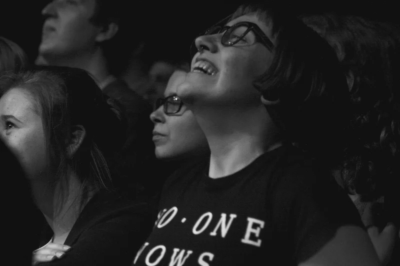 На этой бы высокой и позитивной ноте и закончить бы отчёт и больше никогда-никогда их не писать, потому что всё это бесполезно и все мы вообще лишь космический мусор на безграничных просторах Вселенной, но нам только с вами и остаётся, что прославлять таких вот необычайно талантливых людей. Хоть и нашими дурацкими и недостойными словами, которые до истины явно не дотягивают, а тебе за это и стыдно. Очень странное чувство. И то, что пост-рок — музыка, в основном, инструментальная, в таком контексте кажется уже совсем не случайностью. Но чем выше ты поднялся, тем больнее, как известно, падать — на какие бы космические высоты не занесли нас рассказы о том, что можно было наблюдать за тем, как во время концерта в глазах людей взрывались фейерверки и рождались сверхновые, спускаться на землю всё равно рано или поздно бы пришлось. Как и в любой бочке меда, своя ложка дёгтя тут так же была — и это, по традиции, наш прекрасный концертный зритель. Случайные люди в случайных местах, особенно в таких, связанных с увеселительными мероприятиями — разумеется, далеко не редкость. Но, чёрт возьми, именно в этот вечер было как никогда обидно наблюдать за тем, что определённый процент зрителей светская беседа и светское потягивание жидкостей алкогольных увлекали больше, чем происходящее в тот же самый момент музыкальное действо. То и дело краем глаза можно было уловить отворачивающихся от сцены зрителей, которые, казалось, не особо понимали, куда пришли и зачем. Когда же особо зевающие товарищи разворачивались и открыто направлялись к выходу, хотелось, как минимум, рвать от обиды волосы на голове, а, как максимум, подбежать к такому первому попавшемуся человеку, схватить его за плечи и хорошо так встрясти и спросить о том, ну вот что же ему было не так. Потому что, без преувеличения, все исходящие со сцены вибрации красоты и трогательности могли бы превратить в мягкую воздушную булочку даже самый сухой и чёрствый на свете сухарь. В остальном же всё вполне стандартно и не вызывало никакого удивления или возмущения — расстраивающие уже не так сильно, как товарищи выше, люди с немного безразличными лицами и, видимо, связанными руками (ну а как ещё оправдать людей, которые за весь концерт ни разу не хлопают артисту, даже из уважения); кого-то как всегда не устроил звук, кому-то не хватило атрибутов шоу в виде какой-либо инсталляции или же абстрактного видеоряда, а фотографы, даже с самой передовой техникой, кровавыми слезами ревели из-за минимального света, который написала для 65dos их миниатюрная звукорежиссёр.