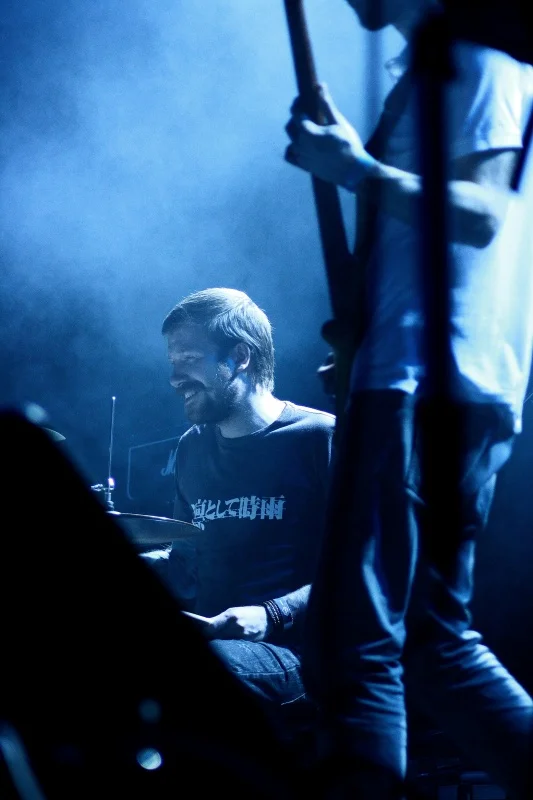 Weary Eyes давно уже на хорошем счету и у поклонников жанра и у просто почитателей производителя отечественного, и многие зрители после объявления разогрева весьма радостно реагировали на новость и сообщали, что теперь побегут смотреть не только на самих хэдлайнеров, но и на саппорт. Разогрев иностранных команд для Weary Eyes — практика давно уже привычная, и очень многие обитатели танцпартера упоминали о том, что группа приглянулась им после того, как в 2014 году они открывали концерт великолепнейших и, к сожалению, ныне почивших Maybeshewill, которые так же, как 65daysofstatic, стали для многих навсегда любимыми и главными любимчиками жанра. Так что ребята вполне себе уверенно вышли к публике и прекрасно отыграли небольшой, но очень уютный сет, который пришёлся по душе поклонникам, и явно помог завербовать в их ряды ещё немалое количество пришедших. И ничего удивительного — Weary Eyes, быть может, не открыли Америку и не внесли в жанр каких-либо революционных новшеств, но играют они хорошо, с душой и, что главное, с уважением к канонам и командам, которые их вдохновляют. Грань между этим самым вдохновением и копированием переступить весьма легко, но так же легко для слушателя понять, что что-то здесь уже не так. В случае же с Weary Eyes не чувствуется никакой пошлости и неискренности, вот и весь простой секрет локального, но успеха. Ну и вдобавок ко всему они очень добродушные и милые, так что даже чисто по-человечески очень к себе располагают, да так, что отпускать их даже не хотелось.
