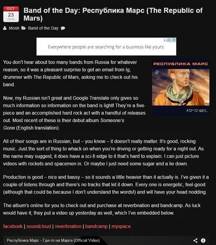 Республика Марс - группа дня на The Moshville Times