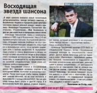 Перепевая чужие песни, Александр стал задумываться о создании собственного альбома, тем более, что уже было несколько готовых песен. Смысла заниматься тем, что не приносит особого удовольствия и карьерного роста, не было, и Александр оставил работу в «Миллениуме», посвятив большую часть своего времени творчеству, работая в своей домашней мини-студии. Ведь без достойных наработок, которые можно было представить широкой публике, настоящий исполнитель-вокалист не может состояться. Александр начал осваивать игру на гитаре, а недавно он записал свой первый диск под названием «Жизни река», куда вошло 12 песен. Корр.: – Александр, недавно в ДК состоялся ваш концерт… А. Закшевский: – Да, это мой первый сольный концерт. Раньше просто материала не хватало, и не получалось организовать такую программу по финансовым причинам и по многим другим. Наработки были, но большая часть песен была написана за последний год, все было сделано своими силами. Корр.: – Были люди, которые вам помогли, оказали финансовую помощь. Вы общаетесь с вознесенскими музыкантами? А. Закшевский: – Нет, финансово со стороны никто не помогал. Отец, сам радиолюбитель, серьезно увлекался музыкой, он видел, к чему я стремлюсь, его помощь и понимание были неоценимы. Еще друзья – меня это спасало. Дружу со многими музыкантами, они мне помогают по работе: кто аранжировку напишет, кто еще что-то. Например, Николай Осадчий сделал соло на гитаре для одной из моих песен, мы держали связь по телефону. Я в общих чертах объяснял, что мне нужно, и дальше он делал запись, отправив мне ее потом по интернету. Таких случаев много. Корр.: – Кто помогает вам делать аранжировки, кто пишет музыку? На диске указано, что стихи и музыку вам помогали писать Д. Пилипенко, С. Осташевский, А. Байдек, Г. Евс, А. Ярош. А. Закшевский: – Да, эти люди действительно мне очень помогли. Но большая часть песен и аранжировок мои собственные. Стараюсь подбирать что-то свое, оригинальное. Корр.: – Ваш выбор – шансон. На вышедшем в России 19 февраля с. г. МР3 - сборнике "Музей шансона. 7 лет с друзьями", среди произведений таких известных исполнителей, как Александр Звинцов, Крестовый Туз, Любовь Шепилова, гр. Лукьяновка, есть и ваша песня "Над могилой". Все больше слушателей узнают ваши песни через интернет, ведь у вас есть свой сайт. Кто является для вас примером в музыке, кто ваши любимые исполнители? Влияет ли это на ваш стиль? А. Закшевский: – Да, есть исполнители шансона, с которых нужно брать пример, но я стараюсь создавать свой, неповторимый стиль в музыке, стараюсь идти своей дорогой. Мне всегда нравилось творчество Григория Лепса, Стаса Михайлова, Сергея Трофимова. Корр.: – Кто все же повлиял на то, что вы подготовили свой концерт, чьи советы помогают вам в творчестве, кто вам помогает в профессиональных вопросах? А. Закшевский: – Мне очень помог Владимир Клименко, опытный музыкант и аранжировщик из Горловки. Мы познакомились по интернету через общих знакомых примерно год назад, начали общаться, и пошло-поехало. Это было просто везение. Володя помог профессионально записать мои песни, он давал нужные советы по музыке и по разным техническим моментам. Сейчас Володя уехал на ПМЖ в Израиль вместе со своей женой, но, думаю, мы будем продолжать наше виртуальное общение. Корр.: – Вы, наверное, хорошо знаете многие компьютерные программы,